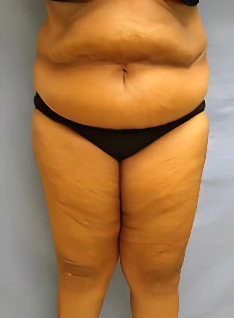 This patient, from Orlando, Florida, was concerned with the fat and excess skin of her abdomen, back, and thighs. She under went 2 staged procedures that were performed 3 months apart. The first procedure consisted of liposuction to her back, abdomen, and thighs. The second procedure was a full abdominoplasty (Tummy Tuck) with muscle tightening.