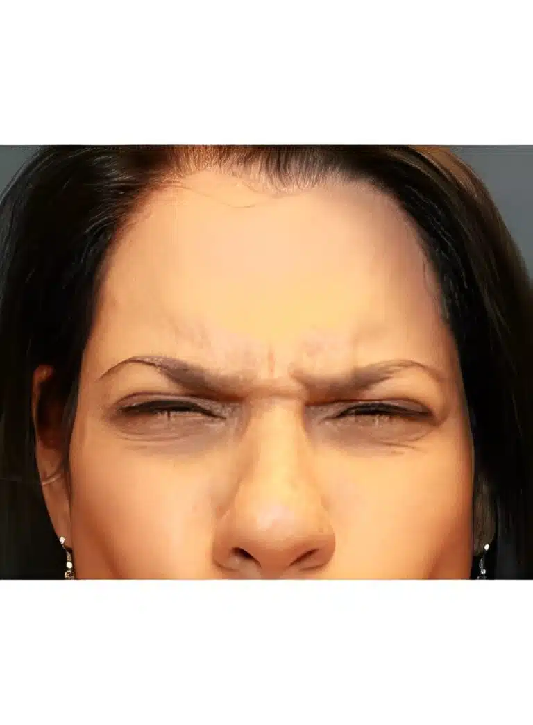 40yr old female who wanted to soften heavy intense brow frown. Dr. Spence injected Botox between the brows.