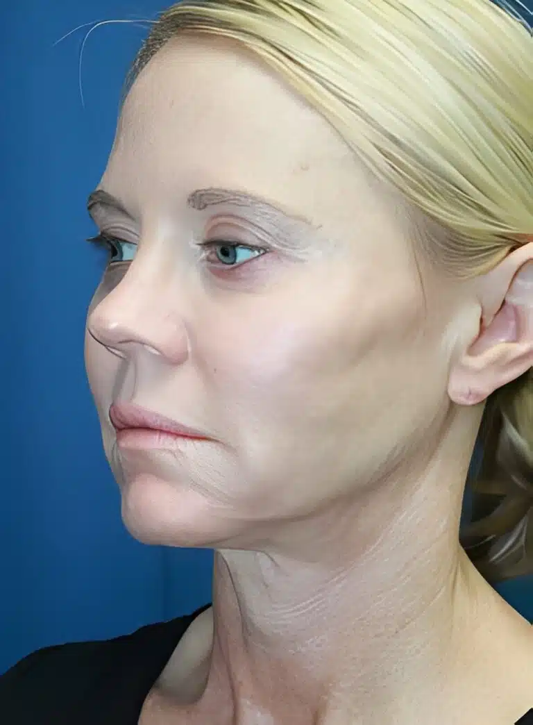 47yr old female from Winter Garden, FL. Patient underwent facelift with high smas Neck lift platysma plication and Bitemporal browlift and upper lid Blepharoplasty.