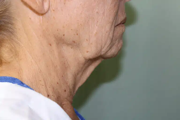 This is a 71yr old female who wanted to have sagging face, jowls and turkey neck tightened. Patient under went a lower facelift with high smas platysmalplasty and platysmal release; bitemporal browlift; bilateral upper blepharoplasty; Fat grafting to peri-oral, chin, cheeks and dermabrasion to peri-oral.